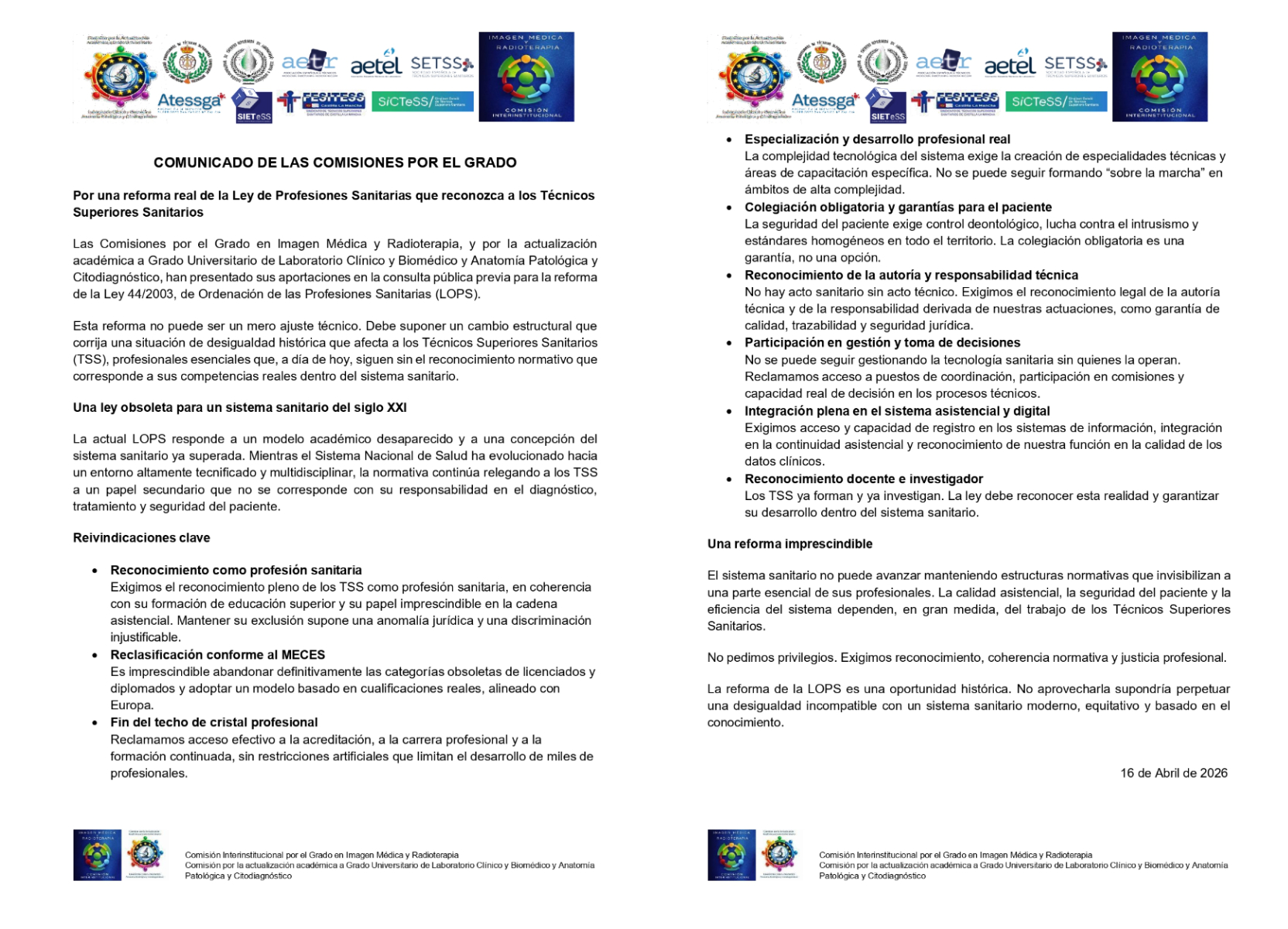 COMUNICADO DE LAS COMISIONES POR EL GRADO UNIVERSITARIO