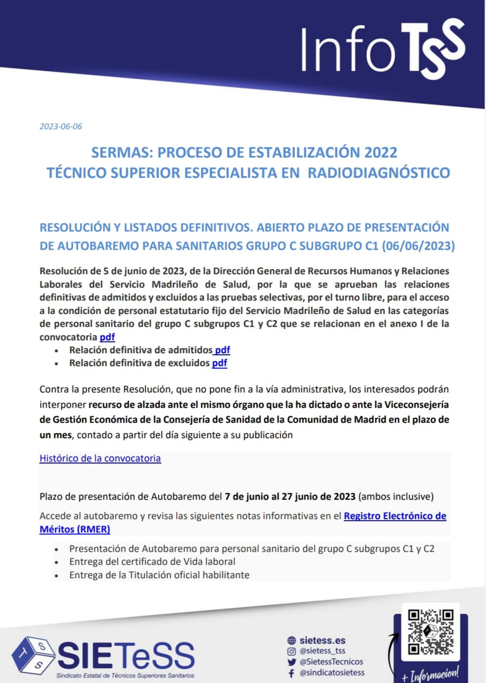 Cantabria; Exclusión por incumplimiento de requisitos en el concurso-oposición para Técnico Superior en Radiodiagnóstico