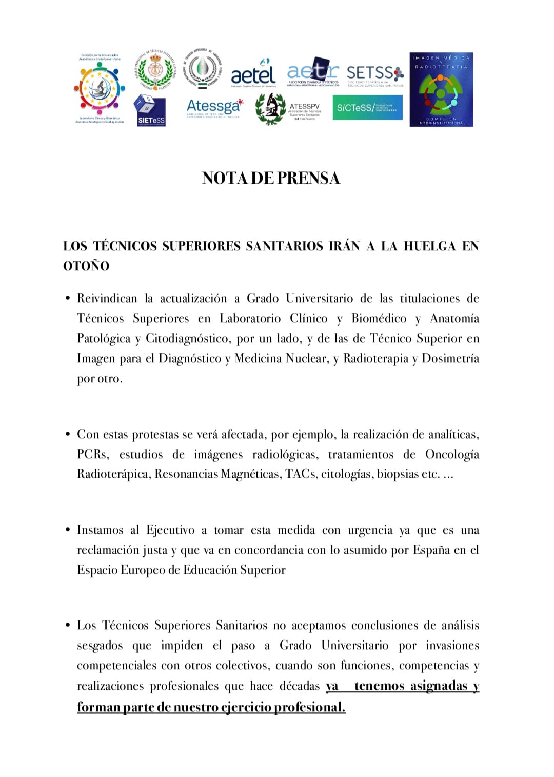 Comunicado oficial: Reunión con el Ministerio de Sanidad.