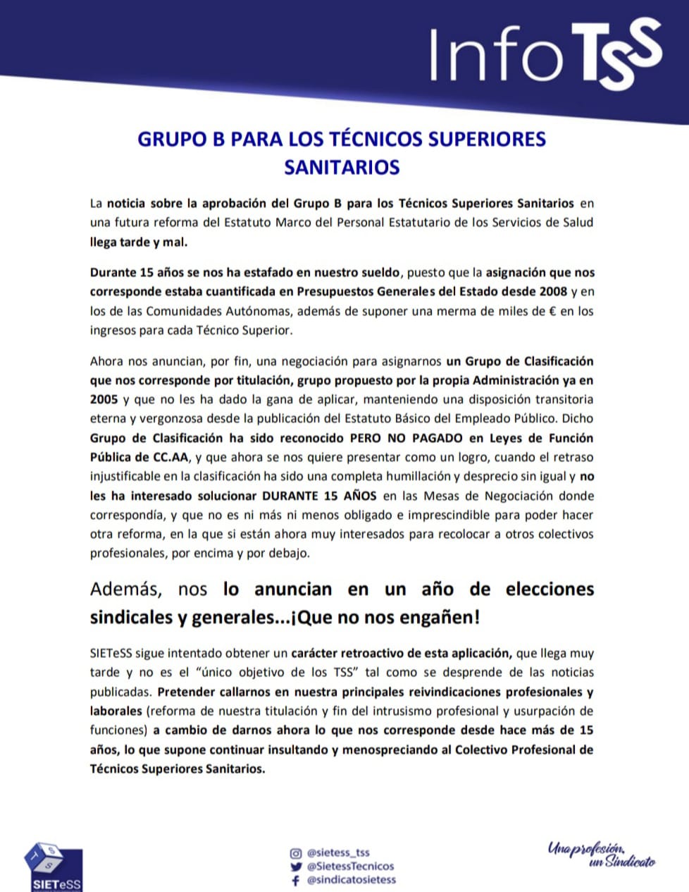 SIETeSS, Sindicato Estatal de Técnicos Superiores Sanitarios