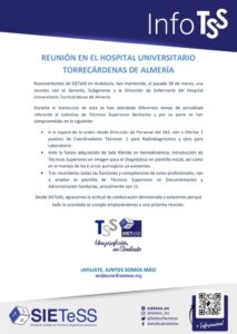 Representantes de SIETeSS en Andalucía, han mantenido, el pasado 28 de marzo, una reunión con el Gerente, Subgerente y la Dirección de Enfermería del Hospital Universitario Torrecárdenas de Almería