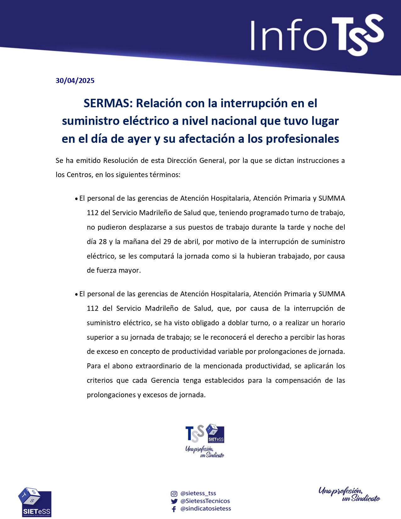 SIETeSS, Sindicato Estatal de Técnicos Superiores Sanitarios